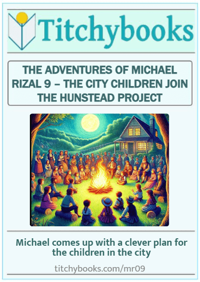 Buy printed copies of the Titchybook titled: ‘The Adventures of Michael Rizal 9 – The City Children Join The Hunstead Project’.